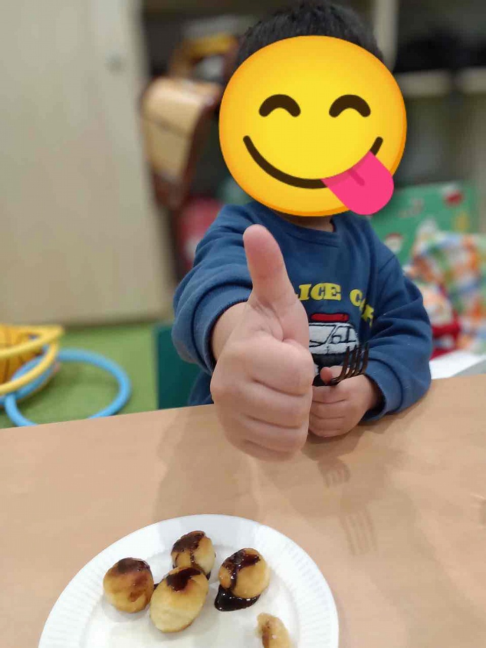 お砂糖をまぶしたり、チョコソースをかけて食べました♪