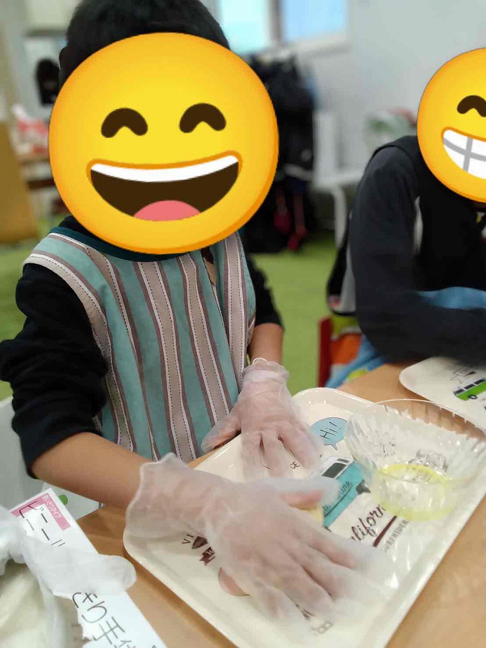 「手にくっつく~💦」と苦戦しながらも形を作っていきます😉